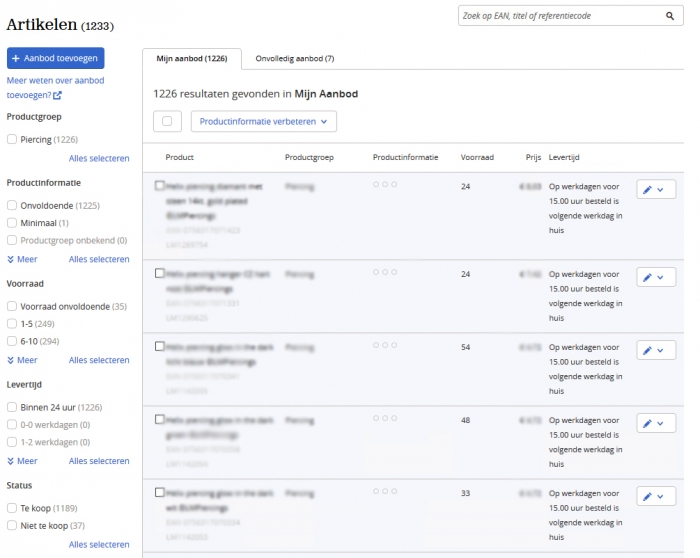 De voorraad verschillen de dag van je producten, net als de prijzen kunnen wisselen. Het is daarom makkelijk dat er tussen de webshop en bol.com een koppeling zit. Deze koppeling zorgt ervoor dat er meerdere malen per dag de voorraad en prijzen worden bijgewerkt op de bol.com pagina.